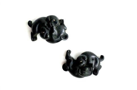 狗児図目貫無銘赤銅地 容彫 金色絵 長さ:20.8mm 幅:14.9mm 厚さ:6.2mm 重さ:5.2g長さ:22.4mm 幅:15.0mm 厚さ:6.1mm 重さ:4.7g